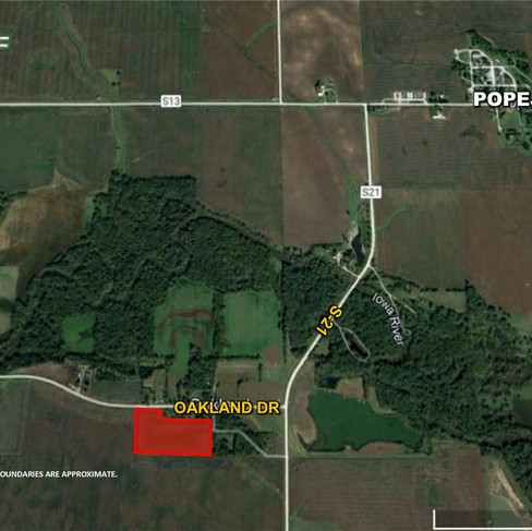 DIRECTIONS: From Popejoy, Iowa, go west on 50th Street for 1/4 mile to Dogwood Avenue. Head south on Dogwood Avenue for 1.5 miles to Oakland Drive. Go west on Oakland Drive for approximately 1/4 mile. The subject property is located on the south side of the road. Please watch for real estate signs.